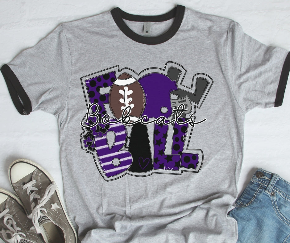 Bobcats - Purple/Black (Mascots Football Word Art) - DTF