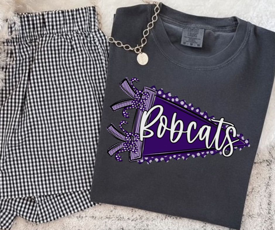 Bobcats - Purple/White (Prepster Pennant Mascot) - DTF