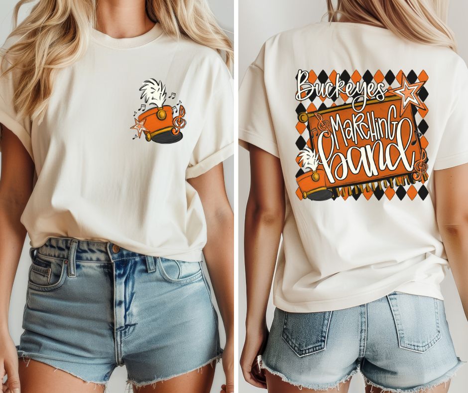 Buckeyes - Orange (Marching Band Argyle Mascots 2-in-1 front/back) - DTF