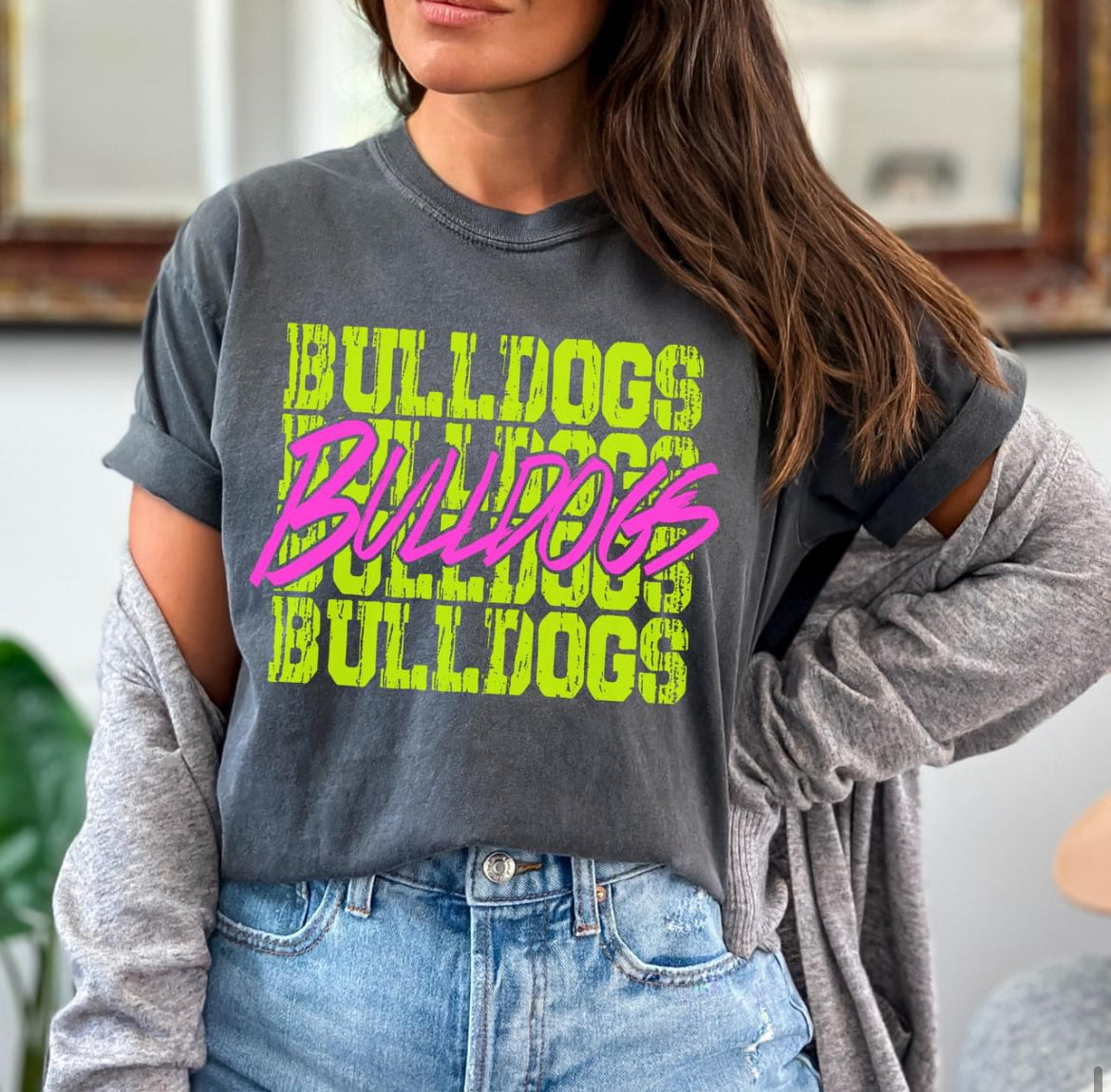 Bulldogs (bright yellow/pink stacked mascot) - DTF