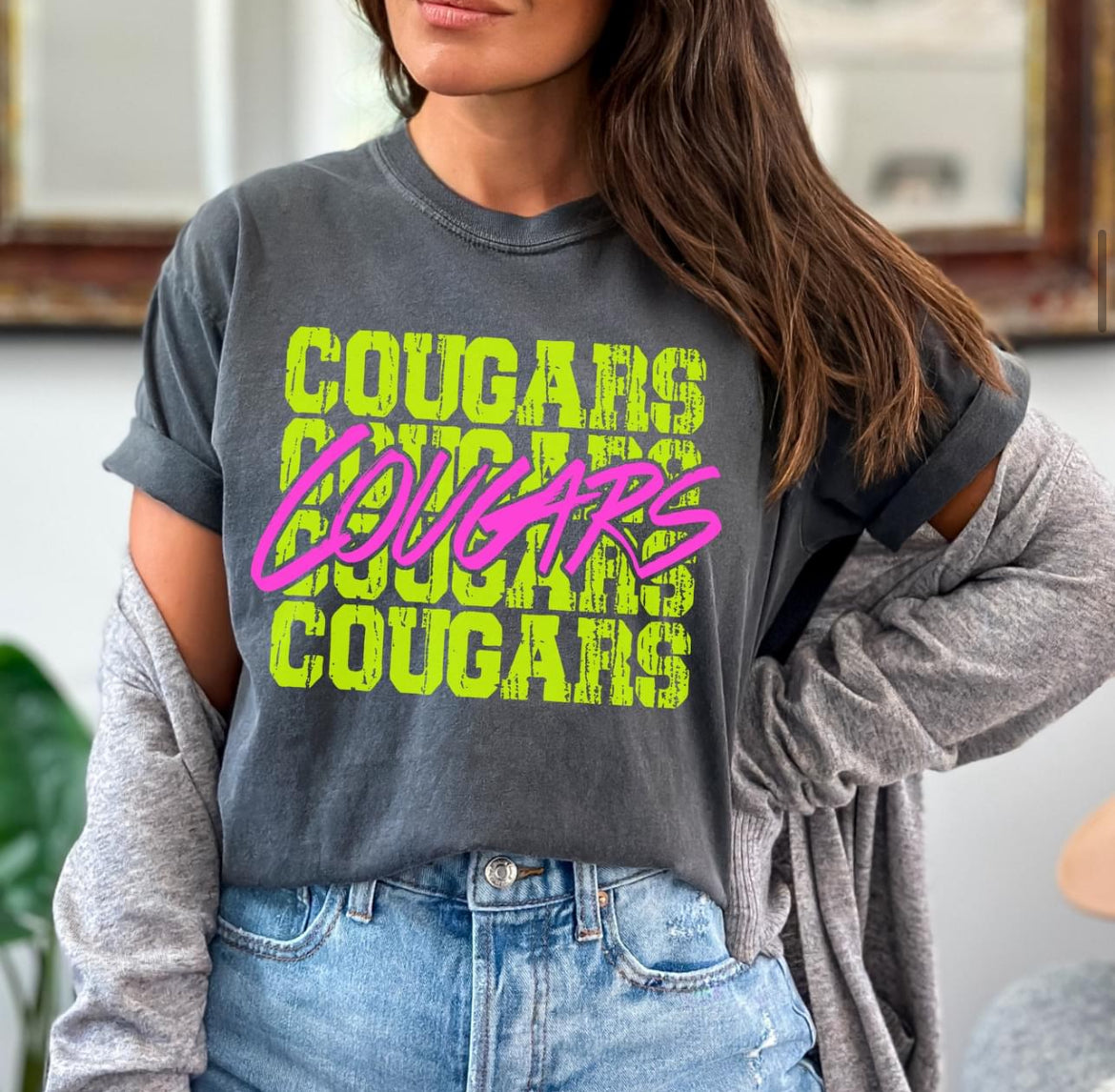 Cougars (bright yellow/pink stacked mascot) - DTF