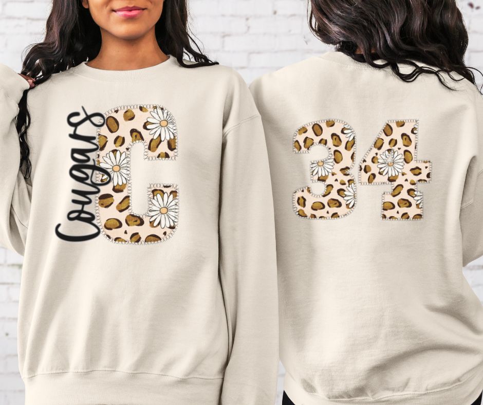 Cougars Leopard and Daisy Mascot (letter and mascot name) - DTF