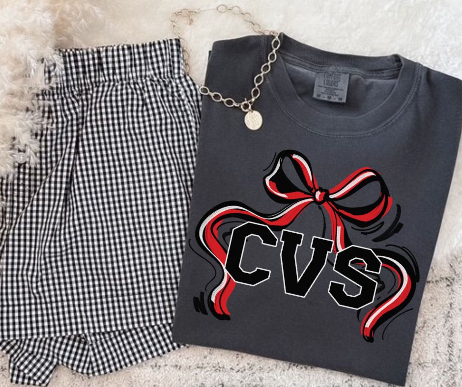 CVS - Red/Black (Ribbon Sports Bow School Spirit) - DTF