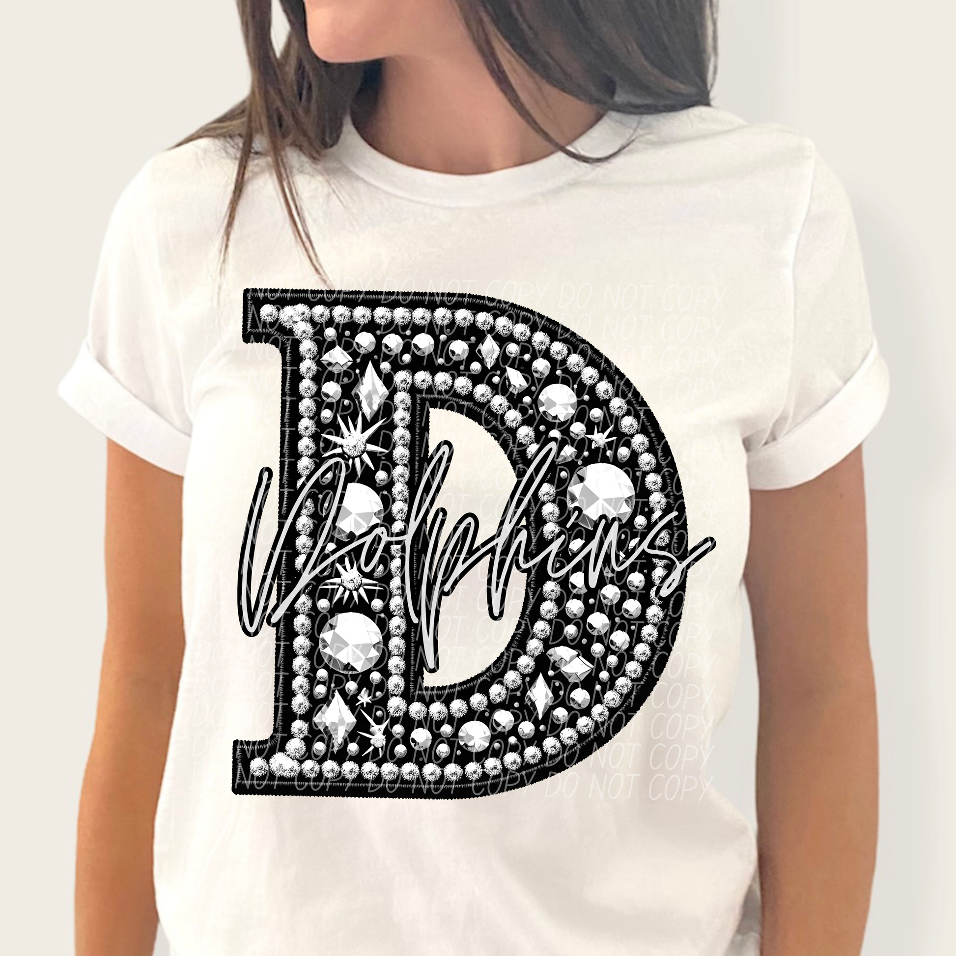 Dolphins (Faux Rhinestone LETTER Mascots) - DTF