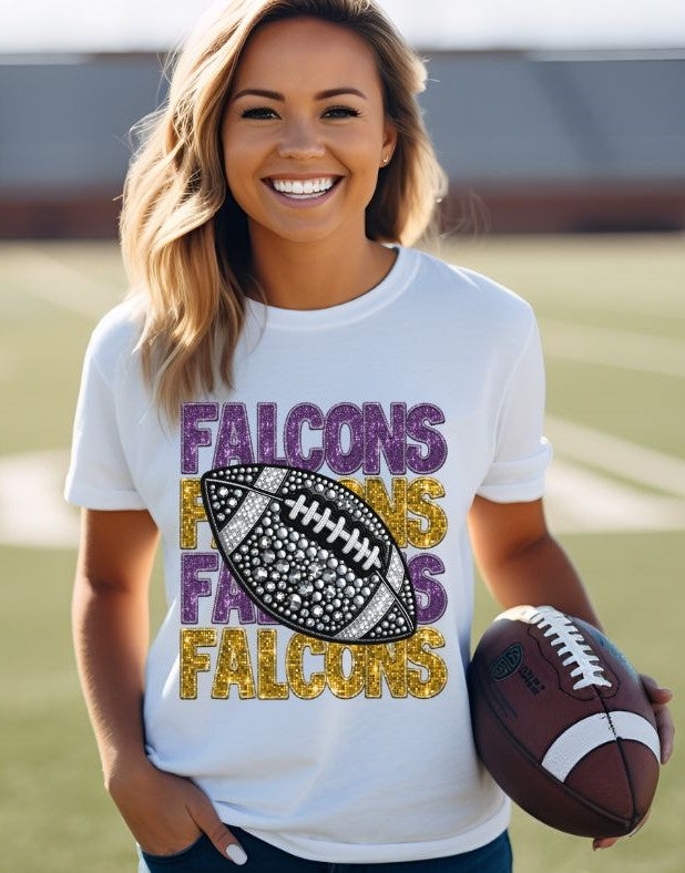Falcons - Purple/Gold (Stacked Bling Football) - DTF