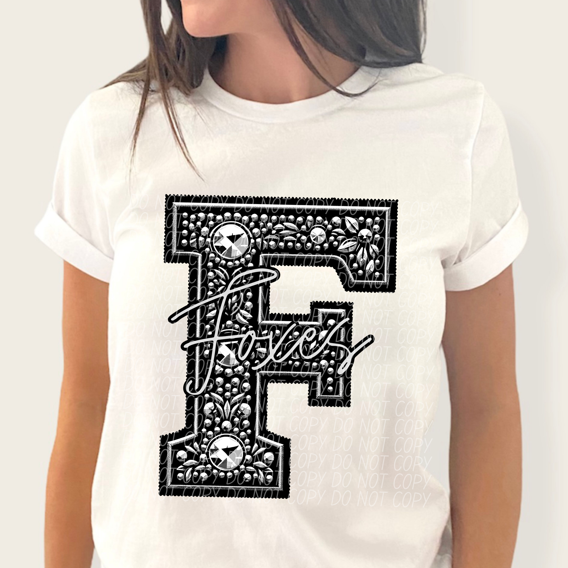 Foxes (Faux Rhinestone LETTER Mascots) - DTF