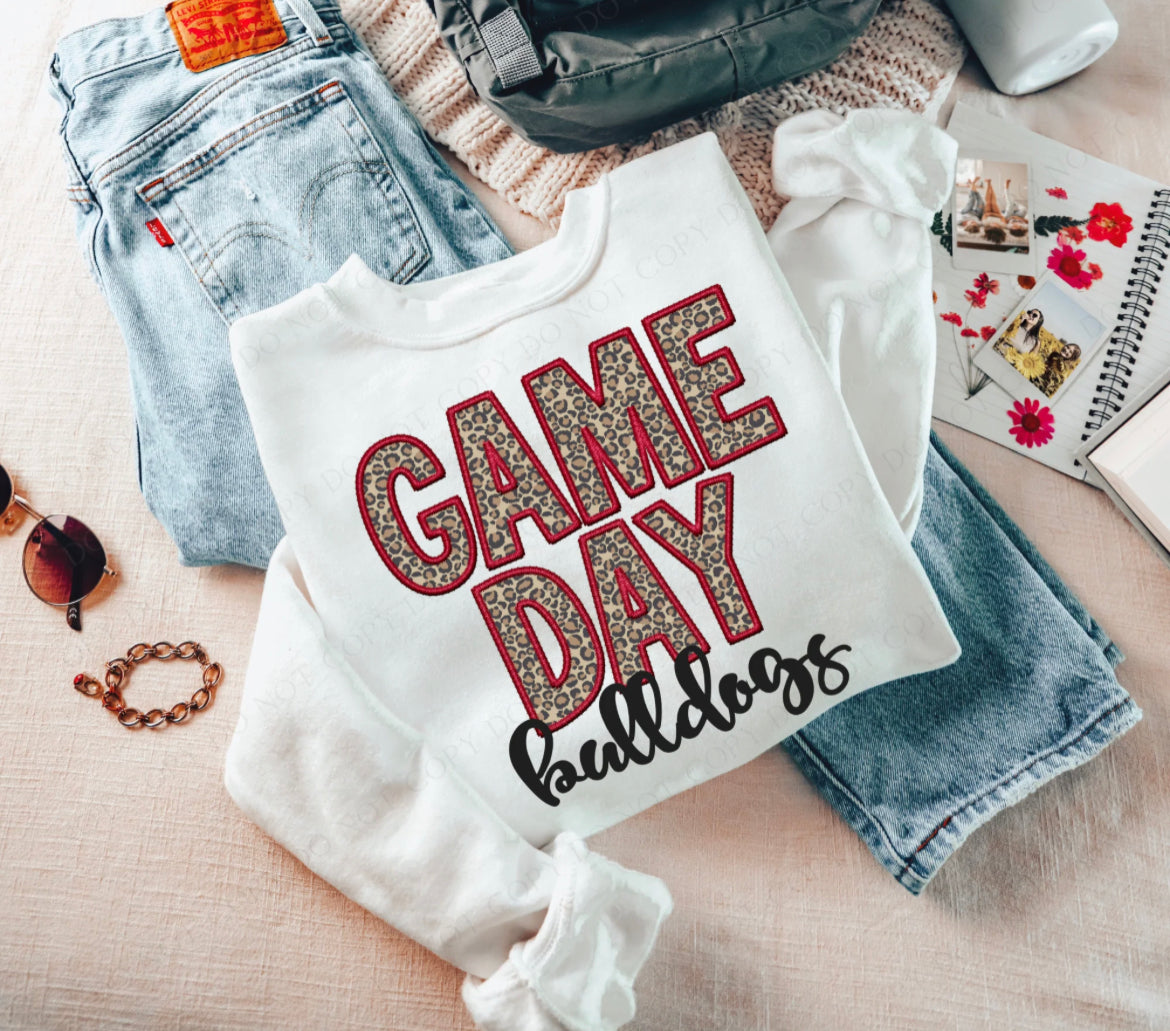 Game Day Leopard (Embroidery look) - Bulldogs (red/black) - DTF