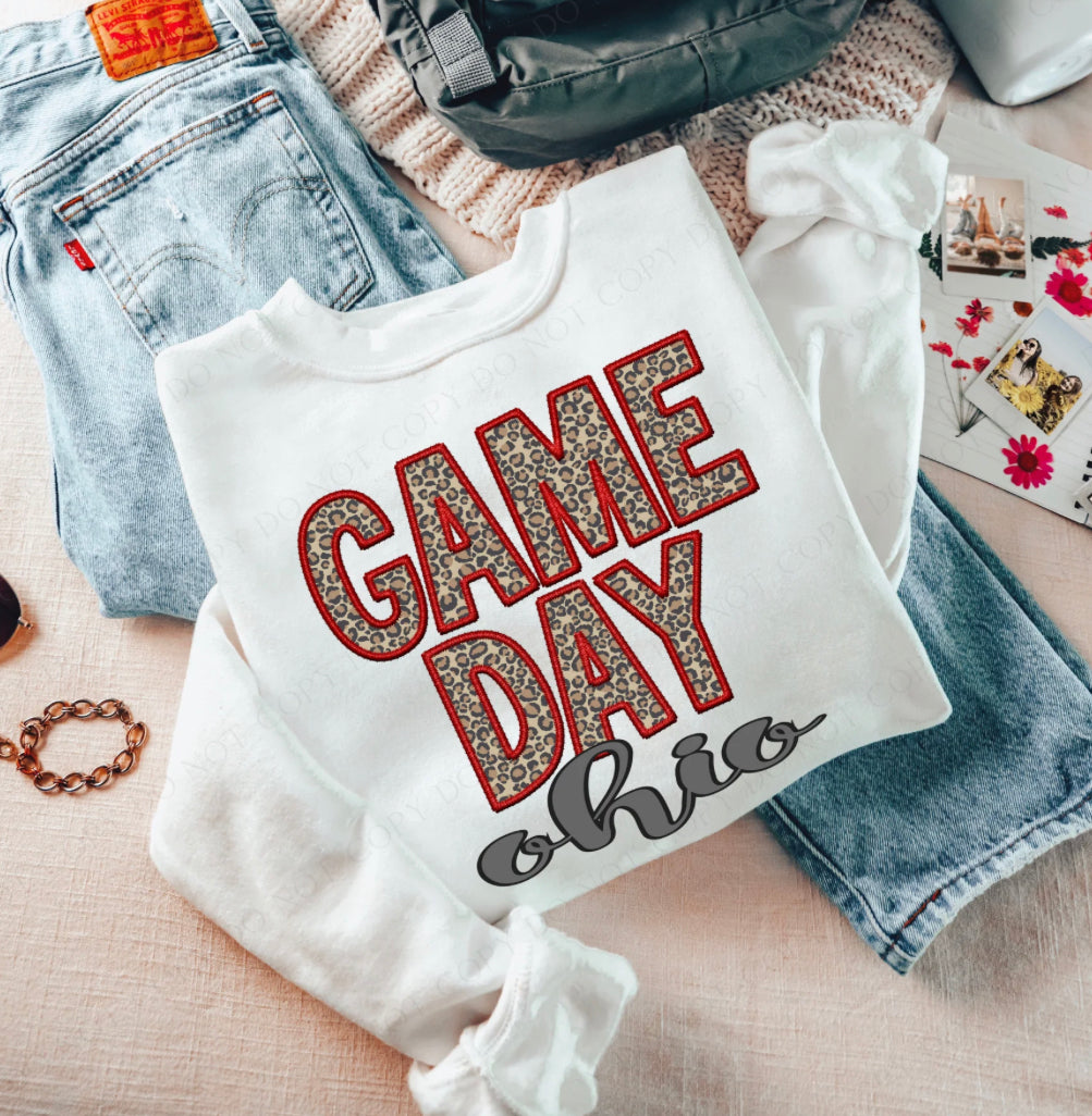 Game Day Leopard (Embroidery look) - Ohio - DTF