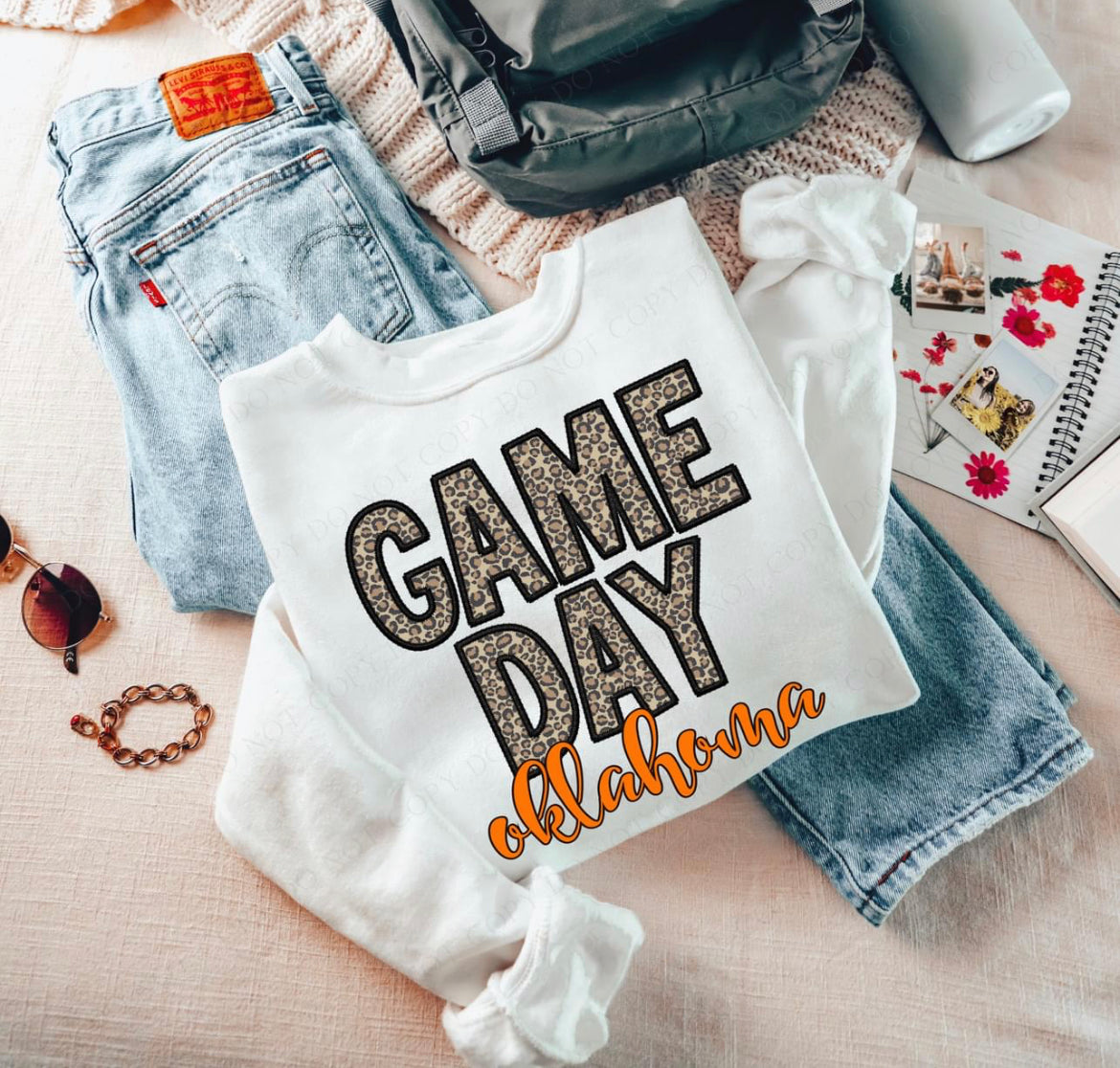 Game Day Leopard (Embroidery look) - Oklahoma (orange) - DTF