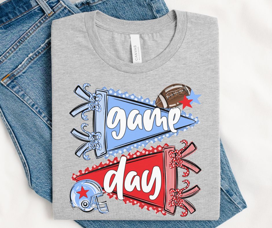 Game Day Sports Pennant - Football (Prepster Red/Columbia Blue) - DTF
