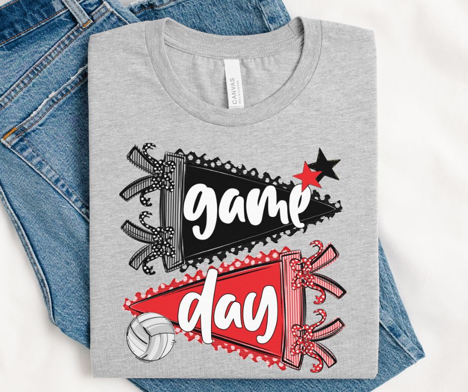 Game Day Sports Pennant - Volleyball (Prepster Black/Red) - DTF