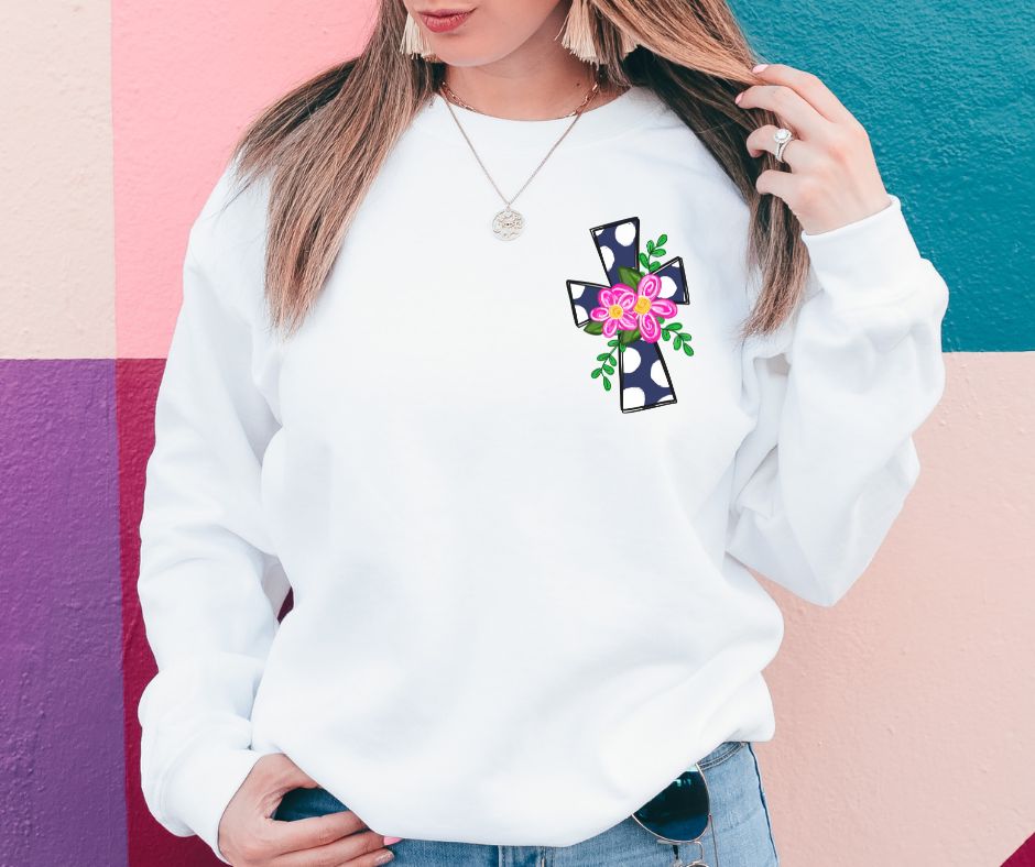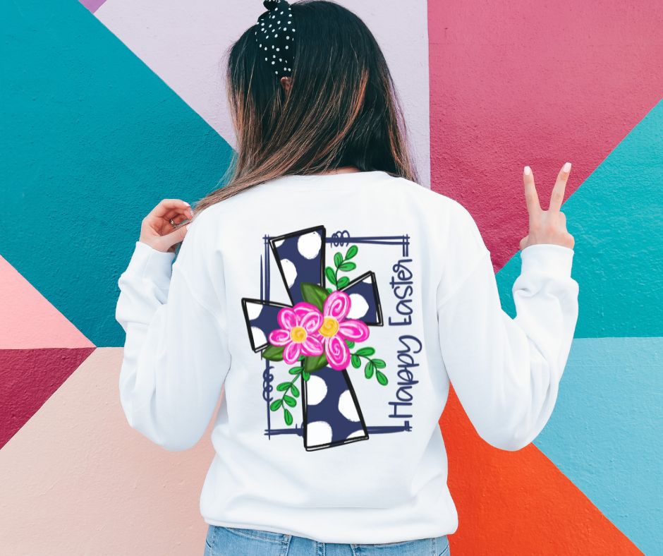 Happy Easter Floral Cross (2-in-1 (front pocket/back design) - DTF