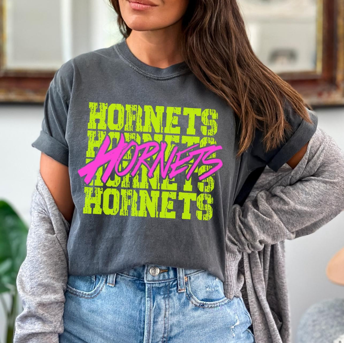 Hornets (bright yellow/pink stacked mascot) - DTF