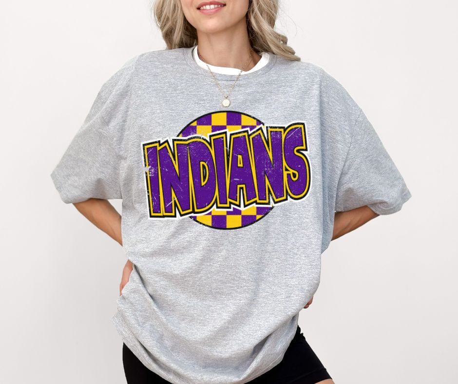 Indians - Purple/Yellow Gold (Mascot - Funky Checkered) - DTF