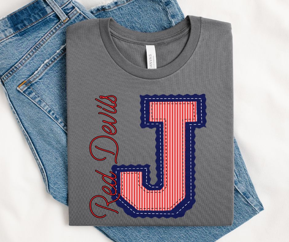 J - Red Devils - Red, Navy (Prepster Mascot) - DTF