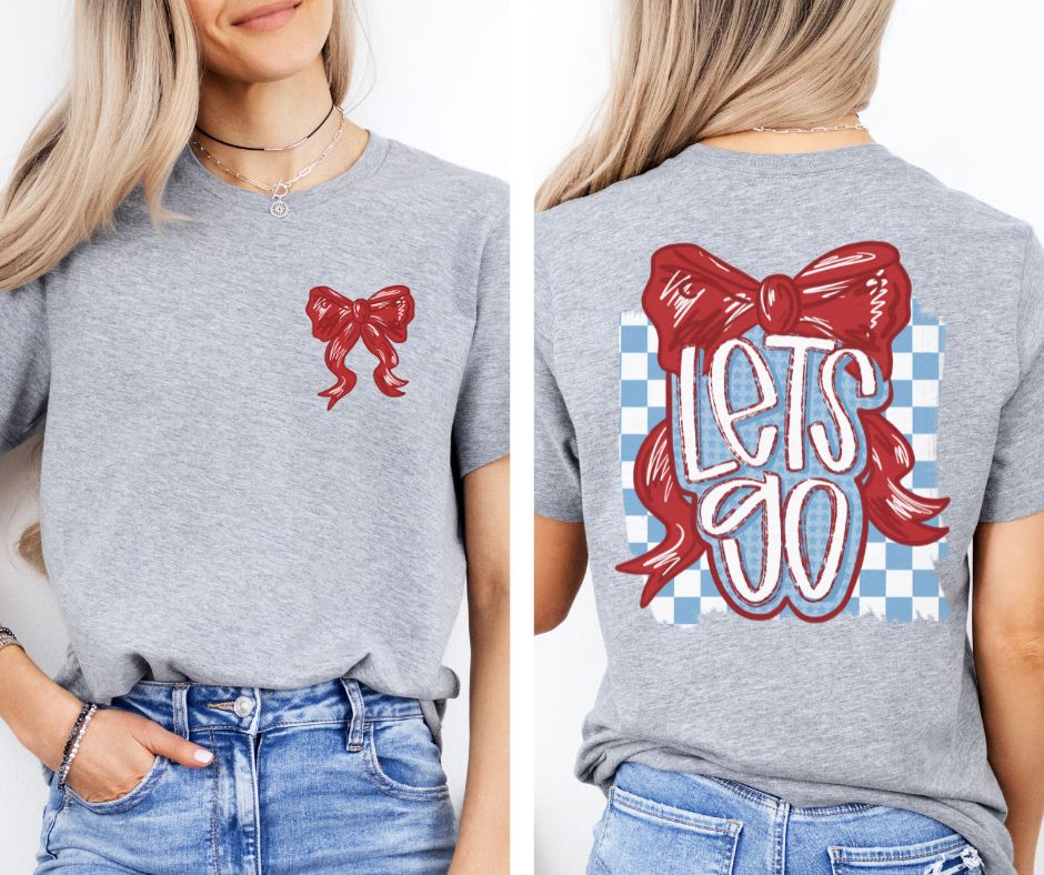 Let's Go Bow - Red/Columbia Blue (2-in-1 (front pocket/back design) - DTF