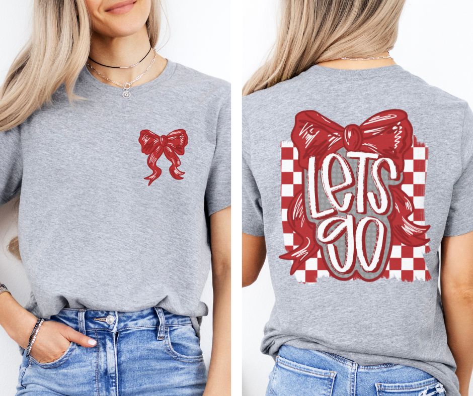 Let's Go Bow - Red/Gray (2-in-1 (front pocket/back design) - DTF