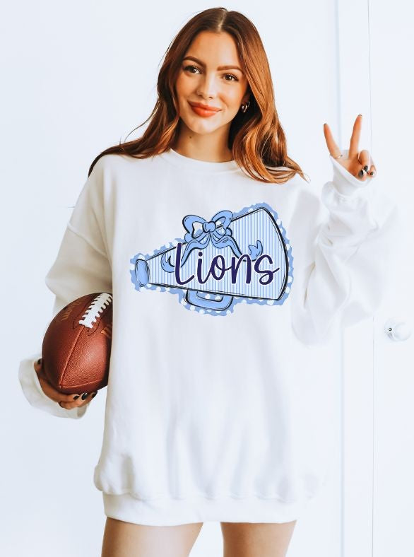 Lions - Columbia Blue/Navy (Prepster Megaphone Bow Mascot) - DTF