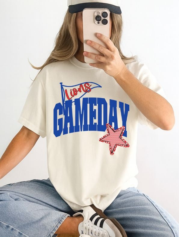 Lions - Red/Royal Blue (Game Day Flag Mascots) - DTF
