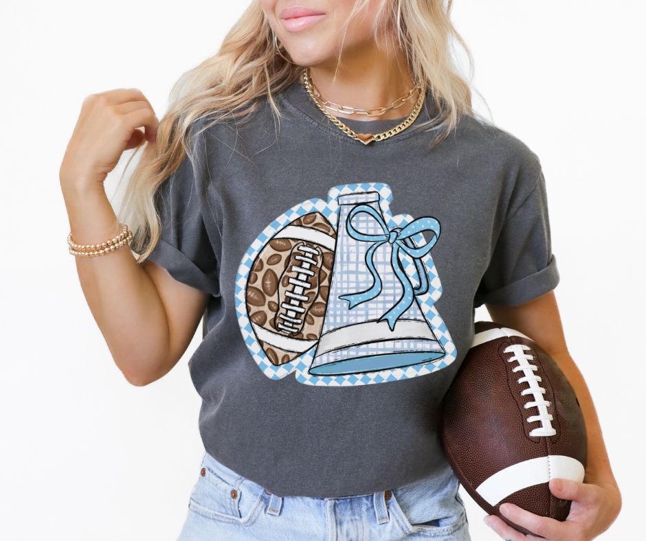 Megaphone & Football Leopard Check (Columbia Blue) - DTF