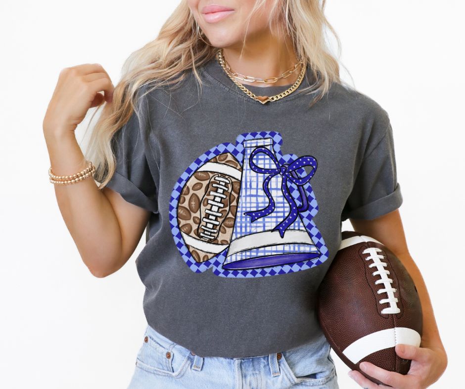 Megaphone & Football Leopard Check (Royal Blue) - DTF