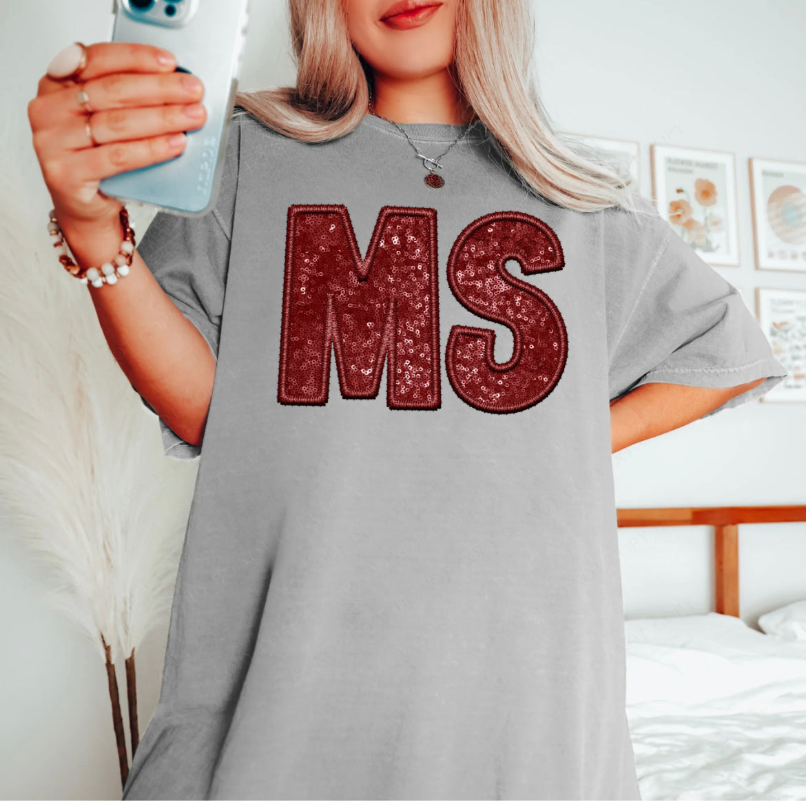 MS - Mississippi (Maroon - Sequins/Embroidery look) - DTF