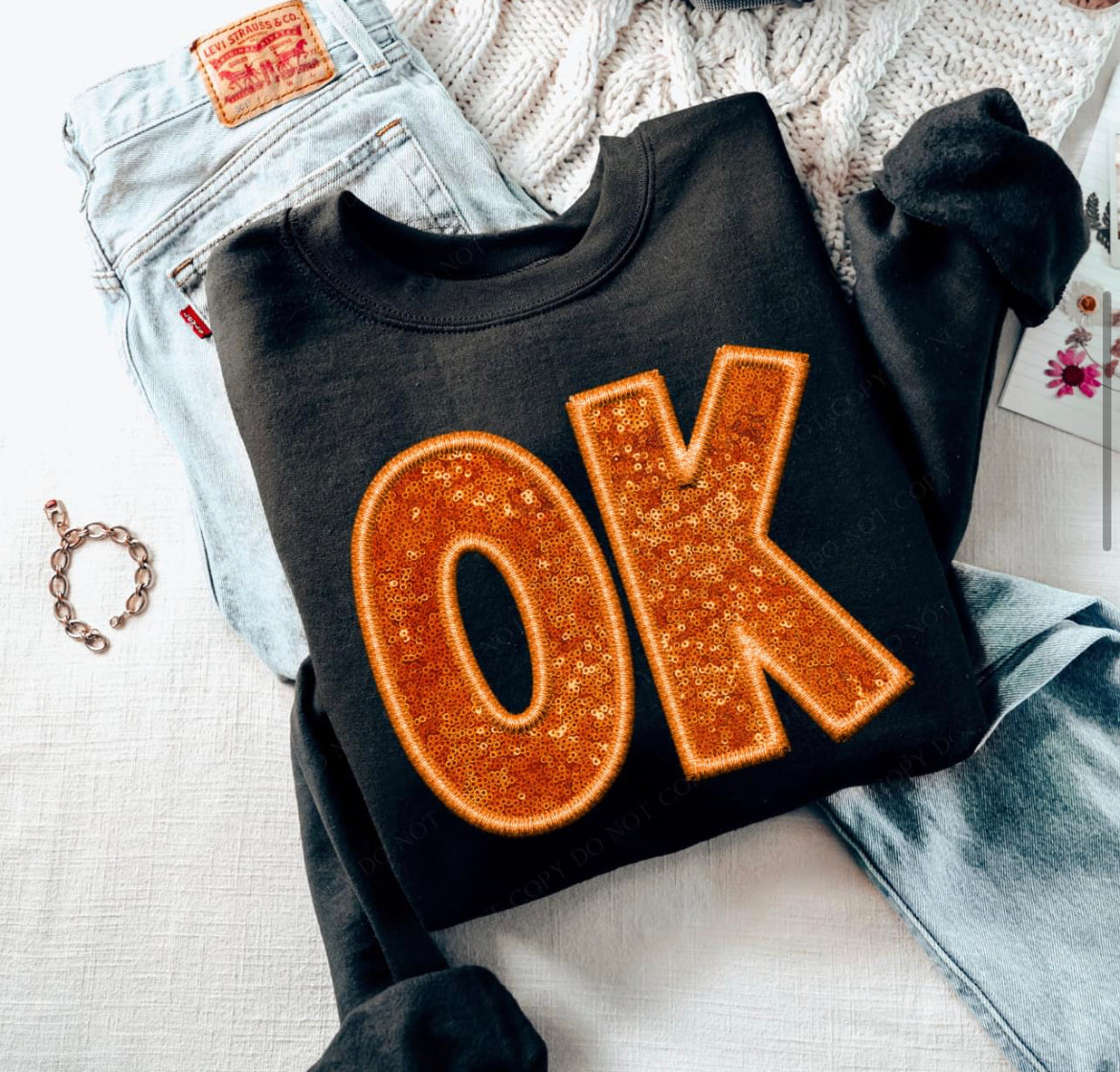OK - Oklahoma (Orange - Sequins/Embroidery look) - DTF