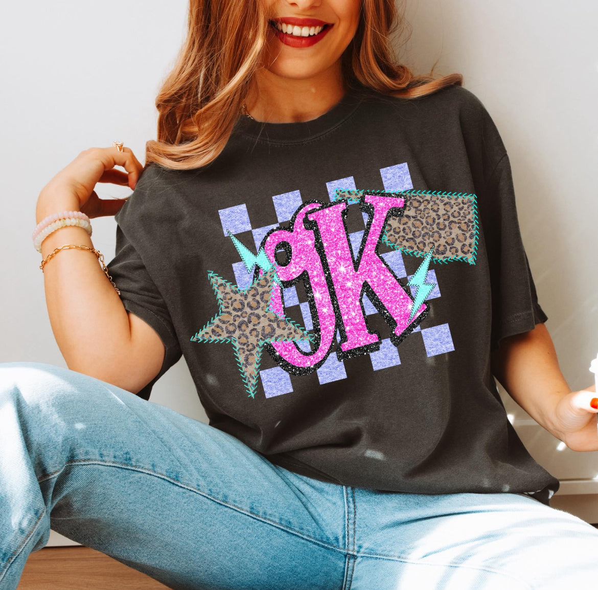 OK (Retro Leopard Checkered Glitter Stitched State Abbreviation) - DTF