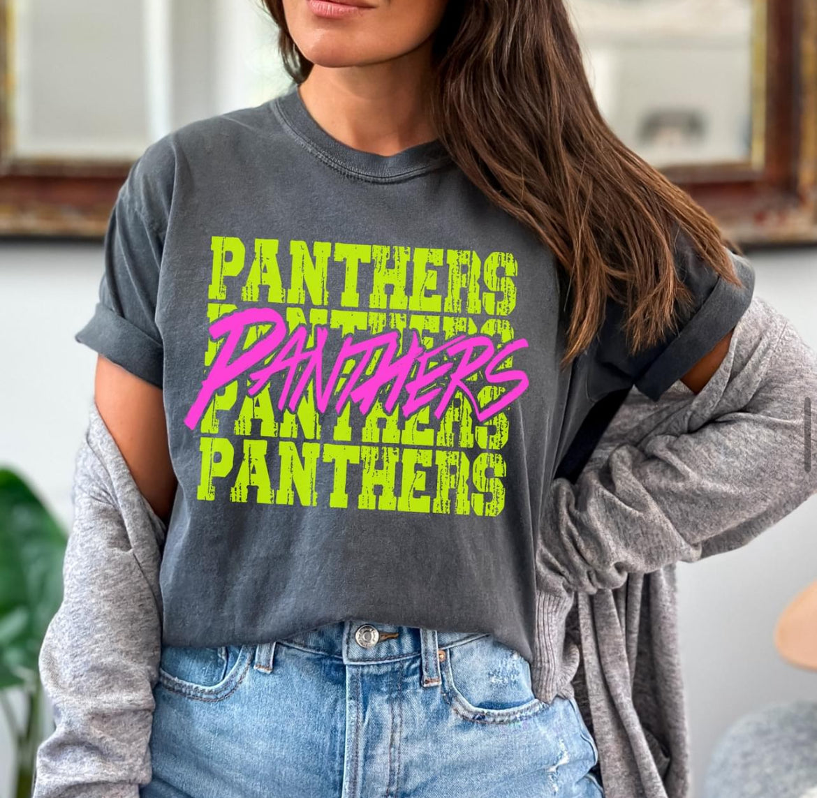 Panthers (bright yellow/pink stacked mascot) - DTF