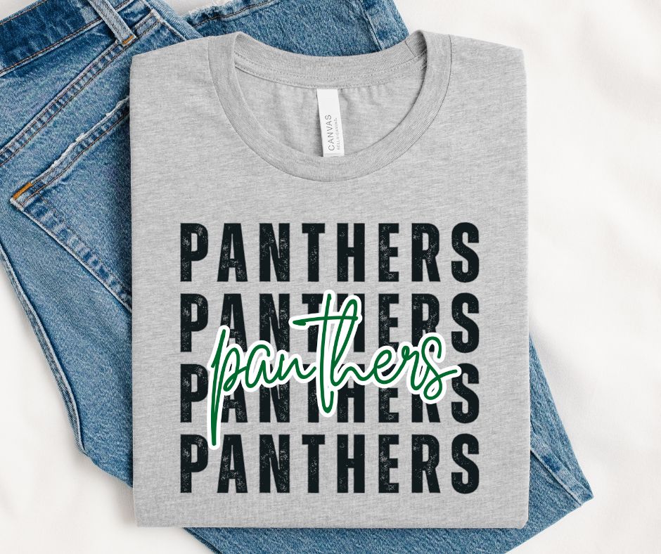 Panthers - Kelly Green/Black (Stacked Distressed Mascots) - DTF