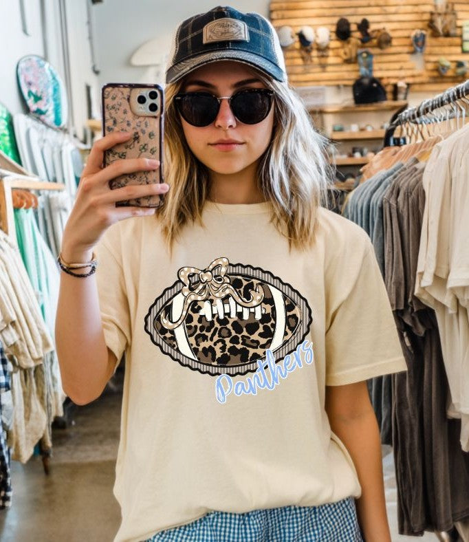 Panthers - Leopard/Columbia Blue/White (Prepster Football/Bow Mascot) - DTF