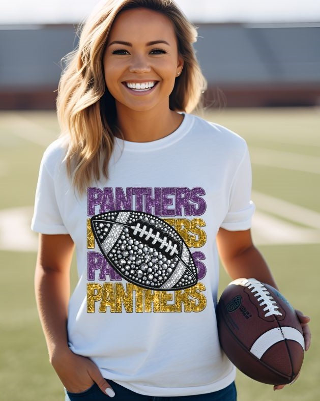 Panthers - Purple/Gold (Stacked Bling Football) - DTF