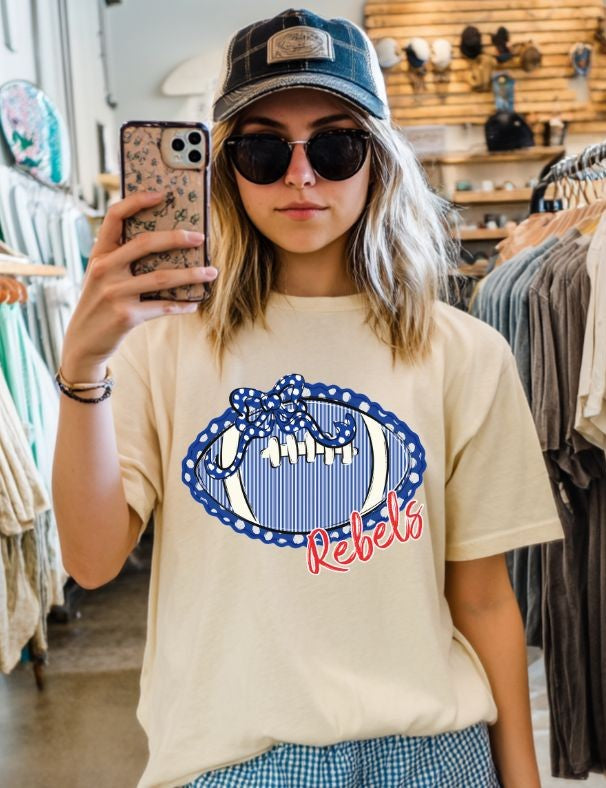 Rebels - Royal Blue/Red (Prepster Football/Bow Mascot) - DTF