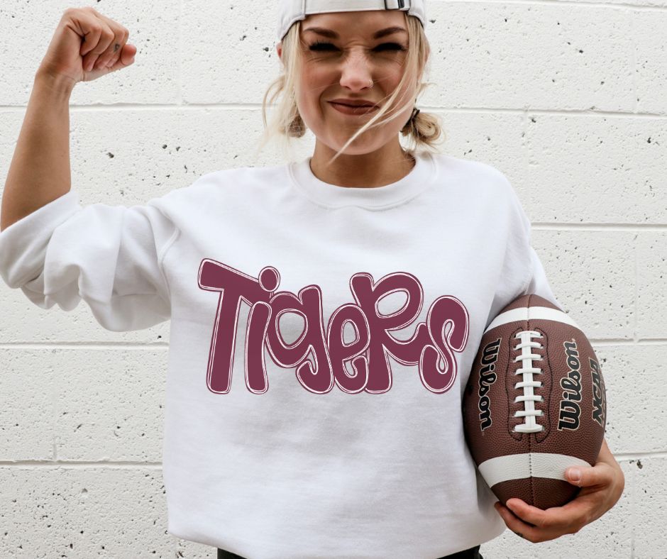 Tigers - Maroon (Funky Doodle Colored Mascot) - DTF