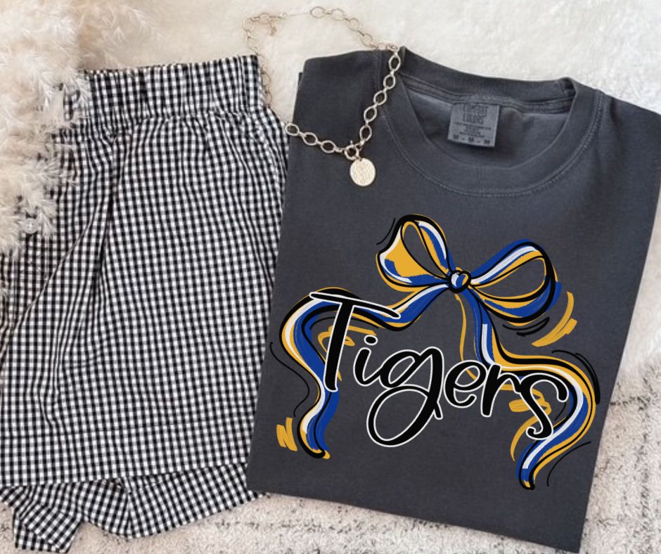 Tigers - Royal Blue/Yellow Gold (Ribbon Sports Bow School Spirit) - DTF