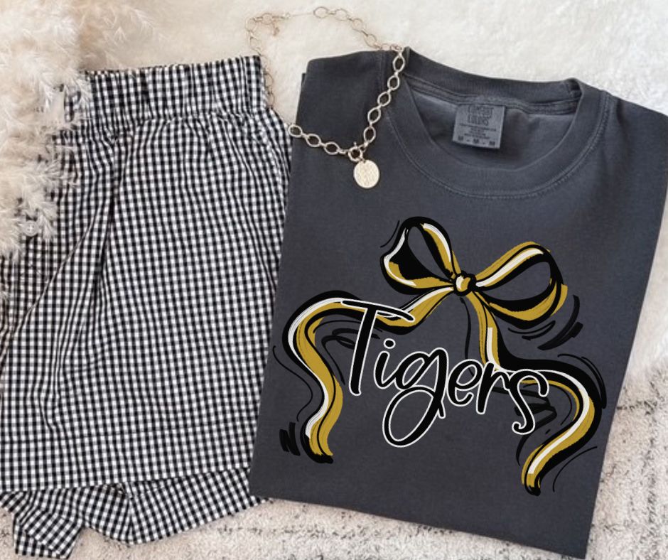 Tigers - Vegas Gold/Black (Ribbon Sports Bow School Spirit) - DTF