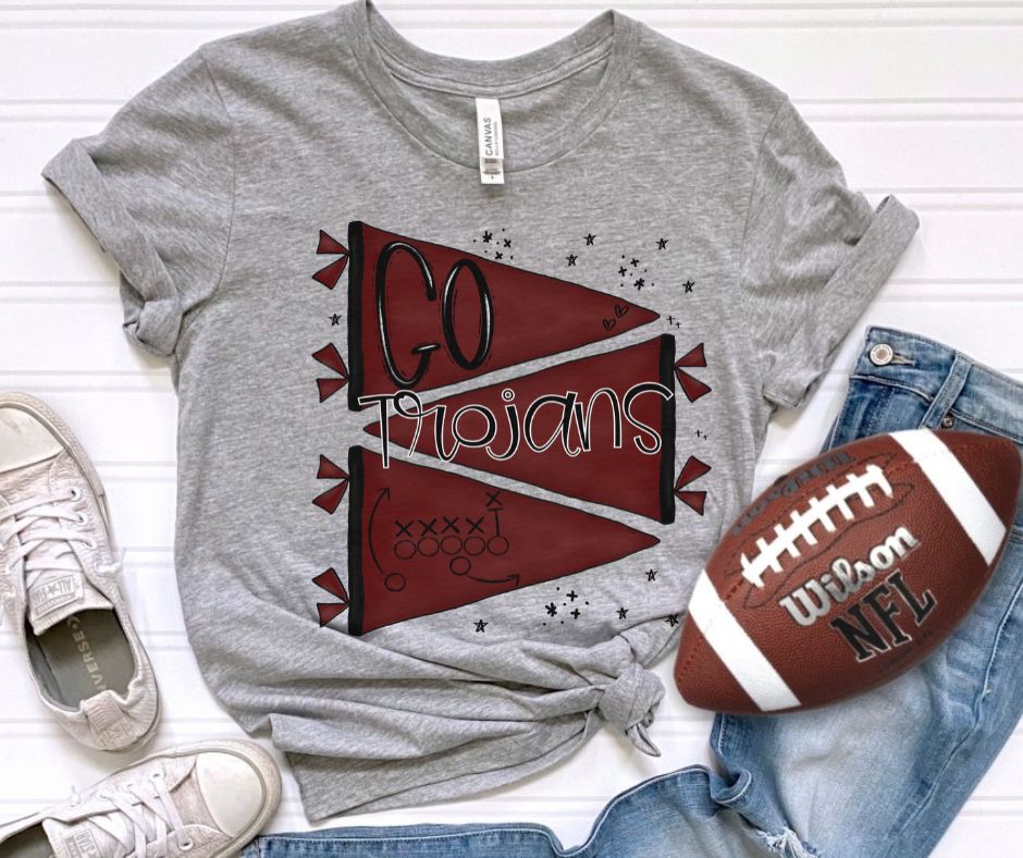 Trojans - Maroon (Mascot - Pennant Go Team) - DTF