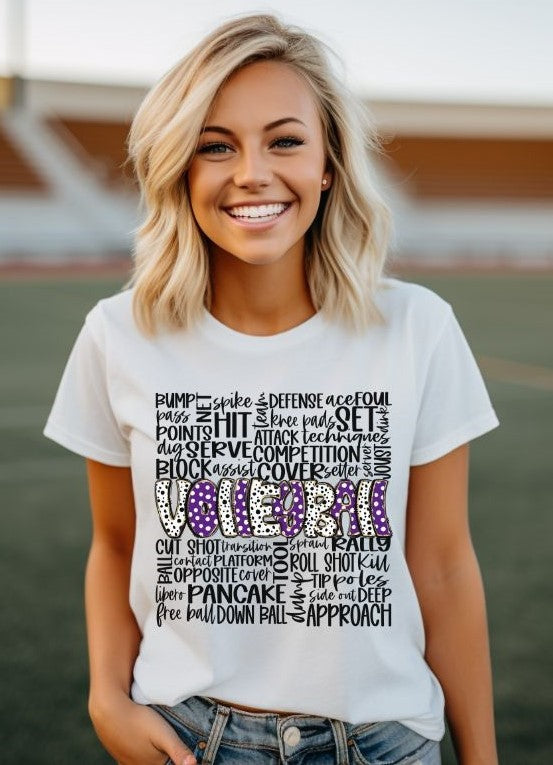 Volleyball Doodle Word Art (Purple) - DTF
