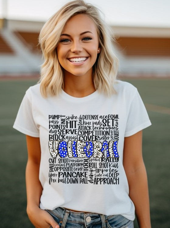Volleyball Doodle Word Art (Royal Blue) - DTF