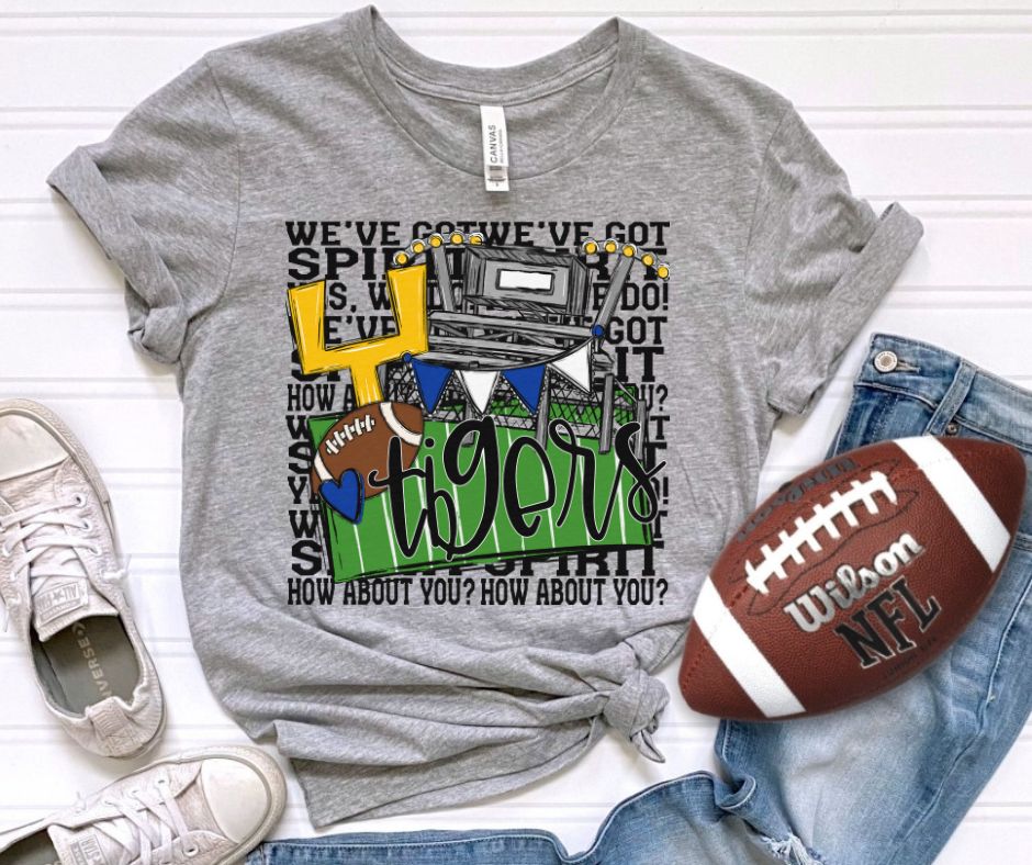We've Got Spirit (Tigers - Royal Blue) - Black background - DTF